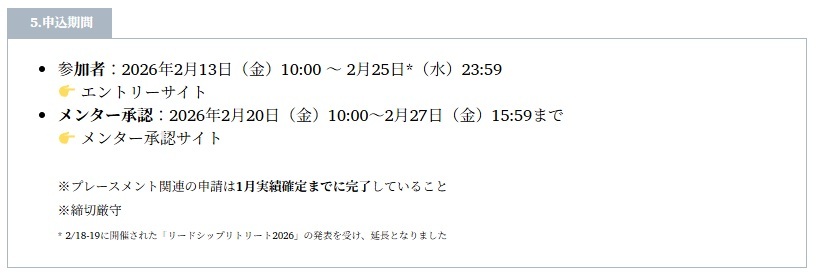 Launch Clubの「LCルール」内「5. 申込期間」に参加エントリーサイトおよびメンターサイトのリンクを掲載しました。