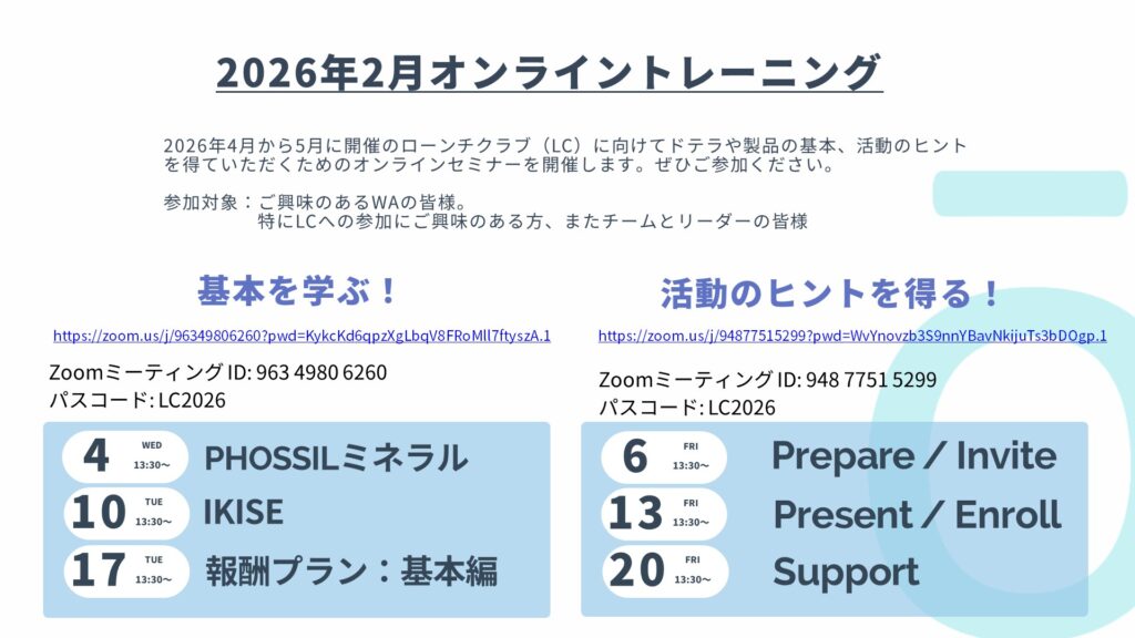 参加者申込マニュアル:https://www.doterra-info.jp/wp-content/uploads/2026/02/2026LC_Entry_Guide.pdf