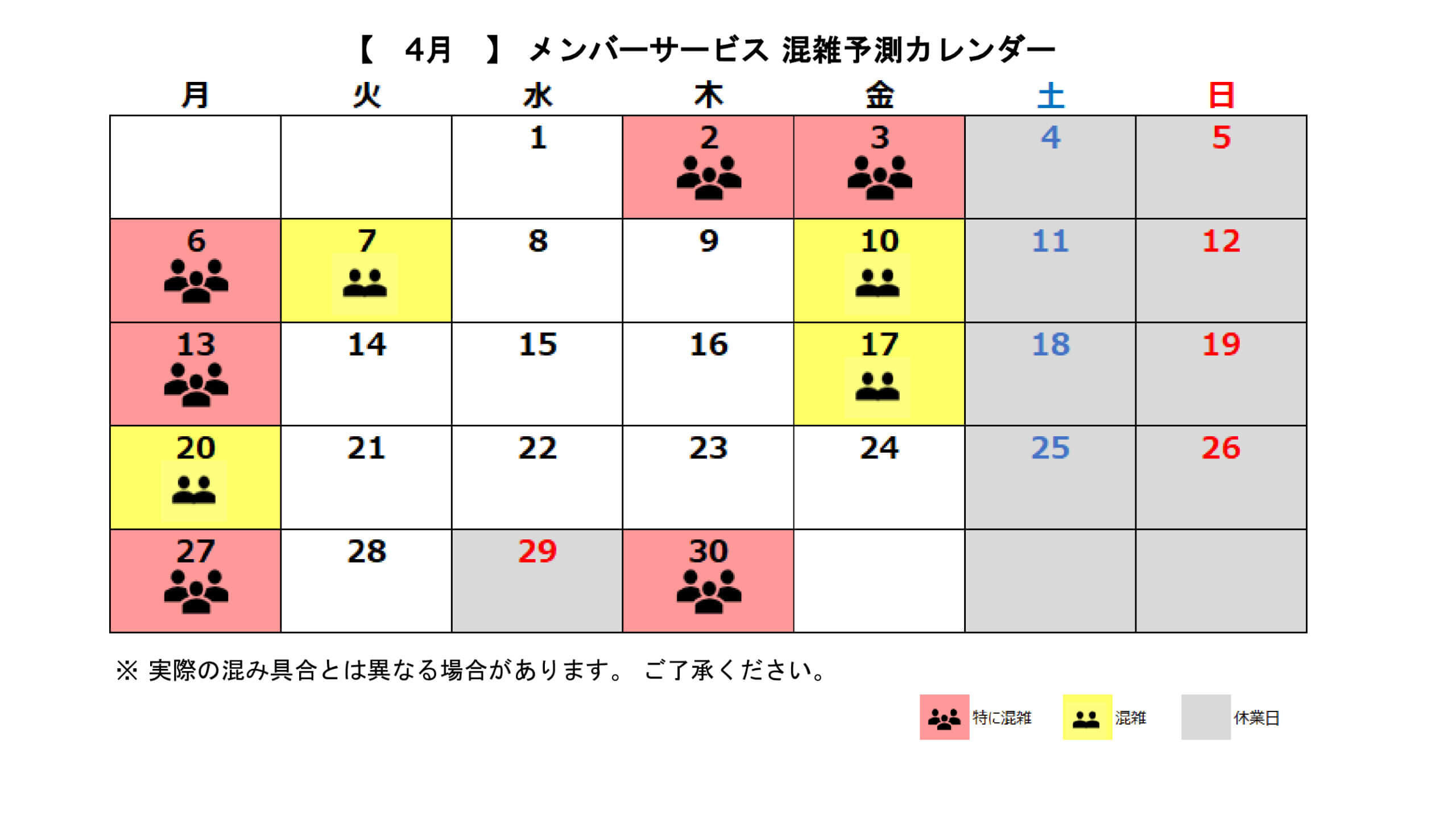 メンバーサービス 混雑予測のお知らせ <3月31日更新>